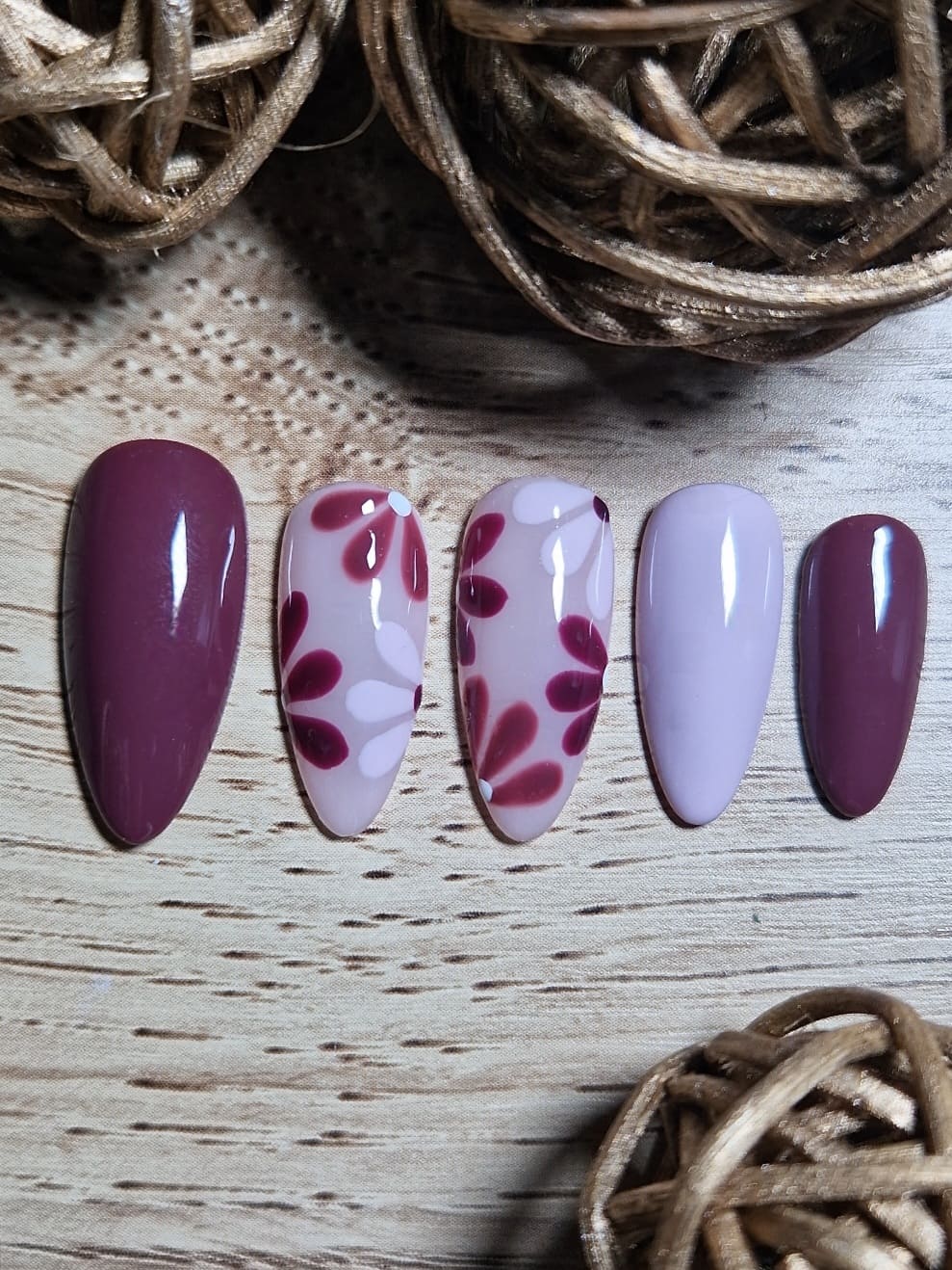 Nous avons utilisé la couleur n°06 en base, la couleur (claire) n°167 pour les fleurs et l’annulaire, la couleur (moyenne) n°176 pour les fleurs, le pouce et l’auriculaire et la couleur (foncée) n°40 pour les fleurs.